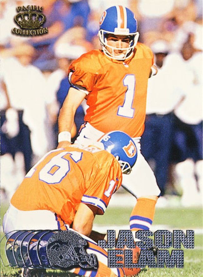 1997 Pacific Jason Elam: Silver NFT [URL=https://sportscardalbum.com/card/49708961/1997-pacific-jason-elam-silver][IMG]https://sportscardalbum.com/c/49708961.jpg[/IMG][/URL]