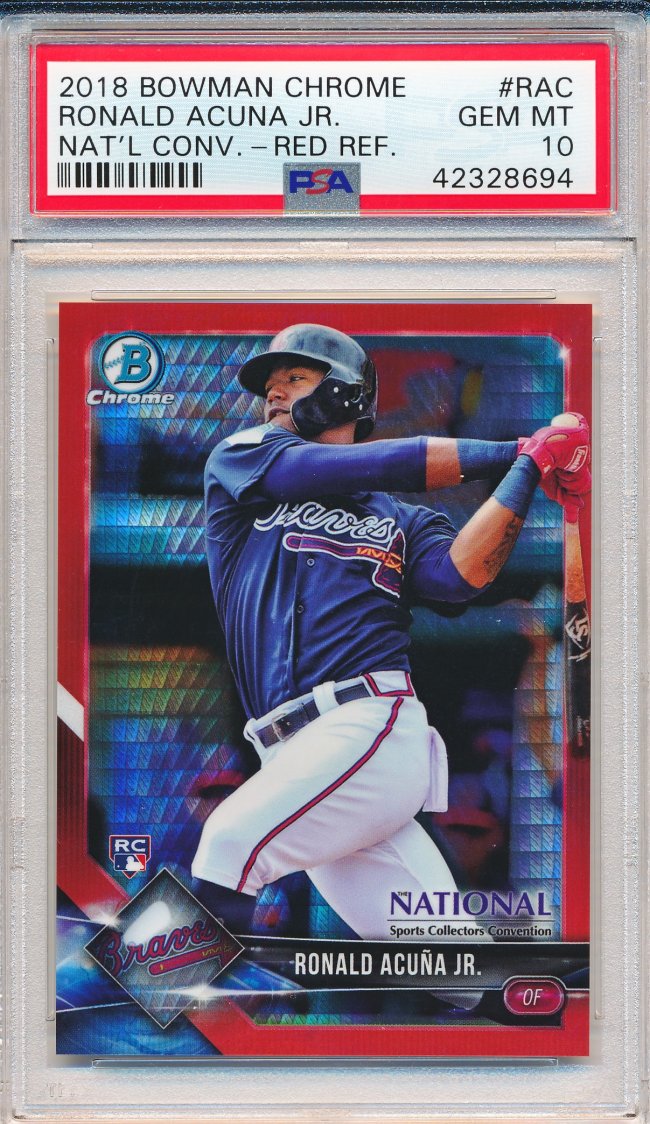 Ronald Acuna 2018 Bowman Chrome National Convention Red Prism Refractor RC /5 PSA 10