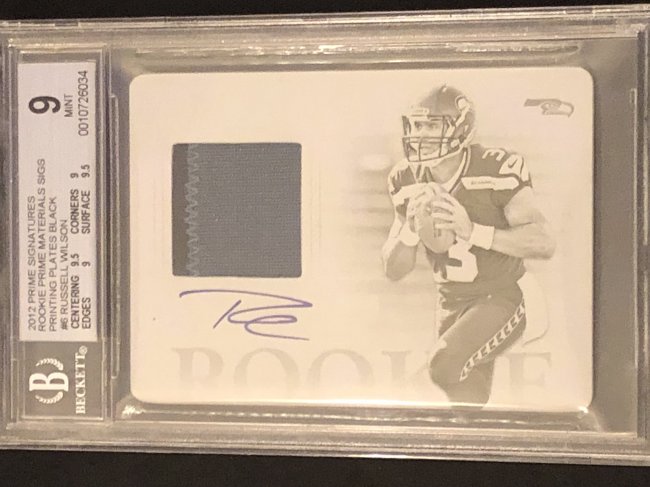 2012 Panini Prime Signatures Rookie Prime Materials Signatures Printing Plates Black #6 Russell Wilson