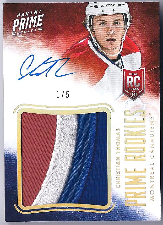 2013-14 Panini Prime Hockey Christian Thomas Prime Rookies Holofoil Prime Patch Autograph