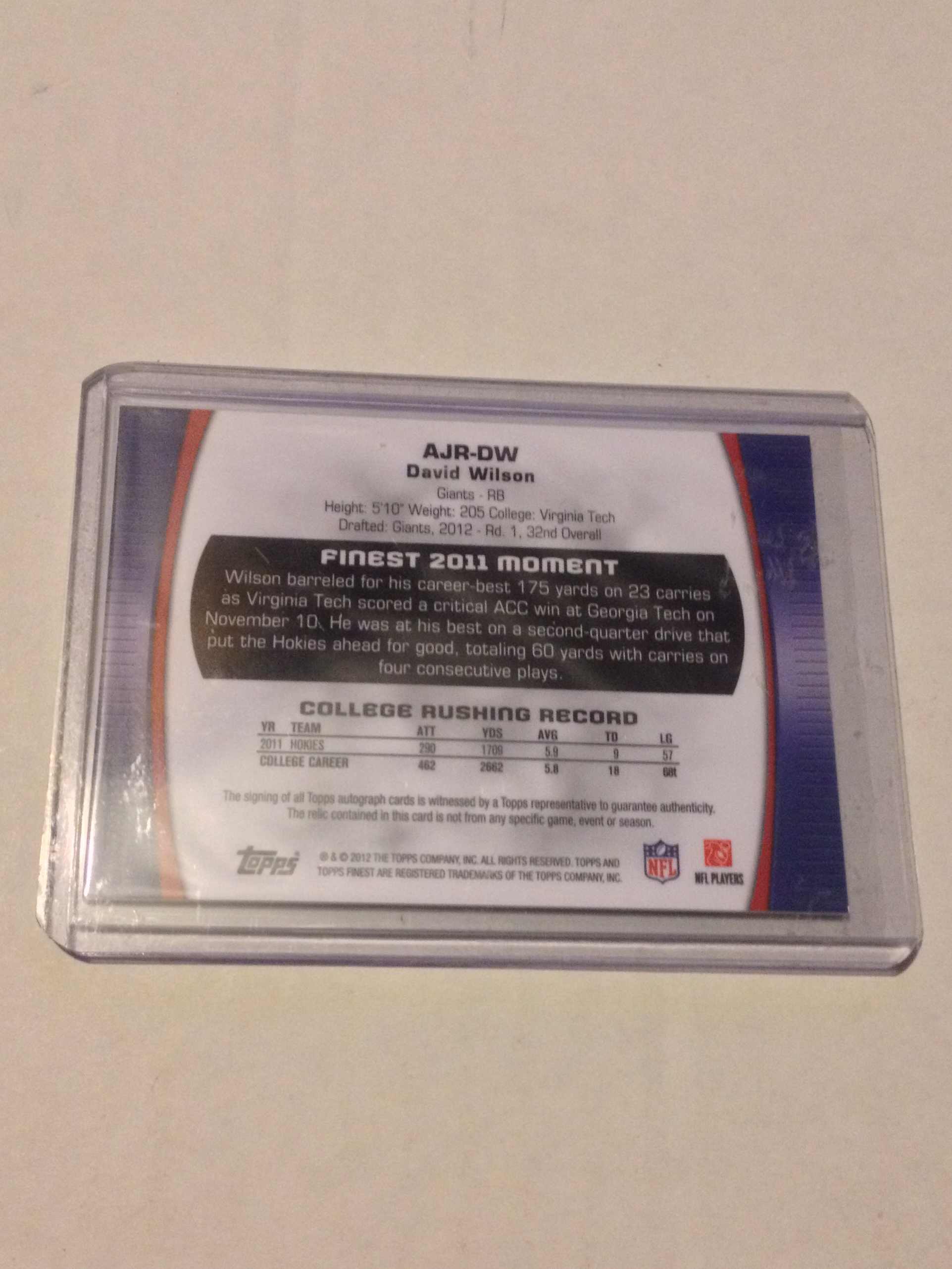 2012 Finest Jumbo Jersey Autographs Blue Refractors David Wilson
