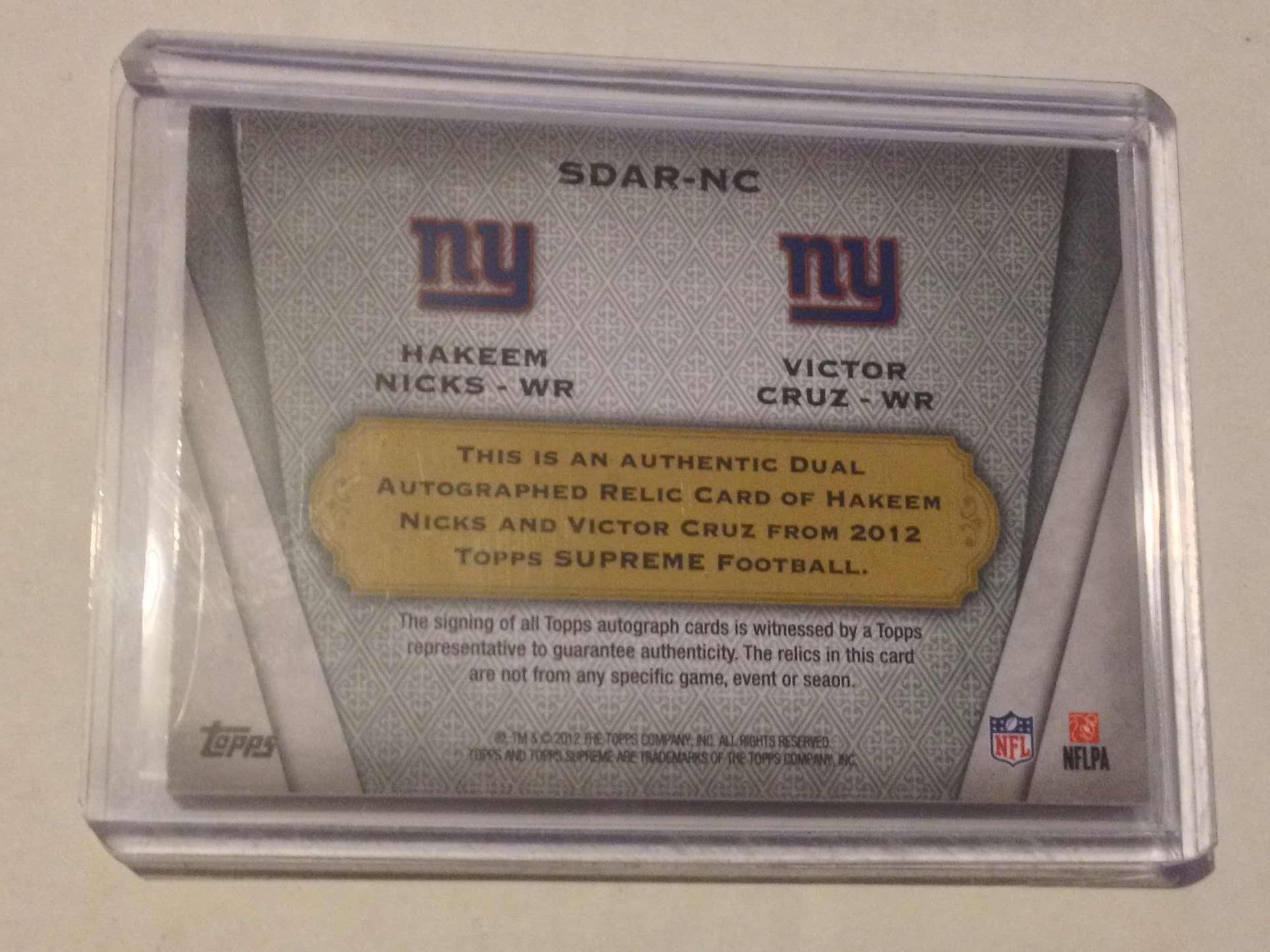 2012 Topps Supreme Dual Autographs Jersey Patch Hakeem Nicks/Victor Cruz