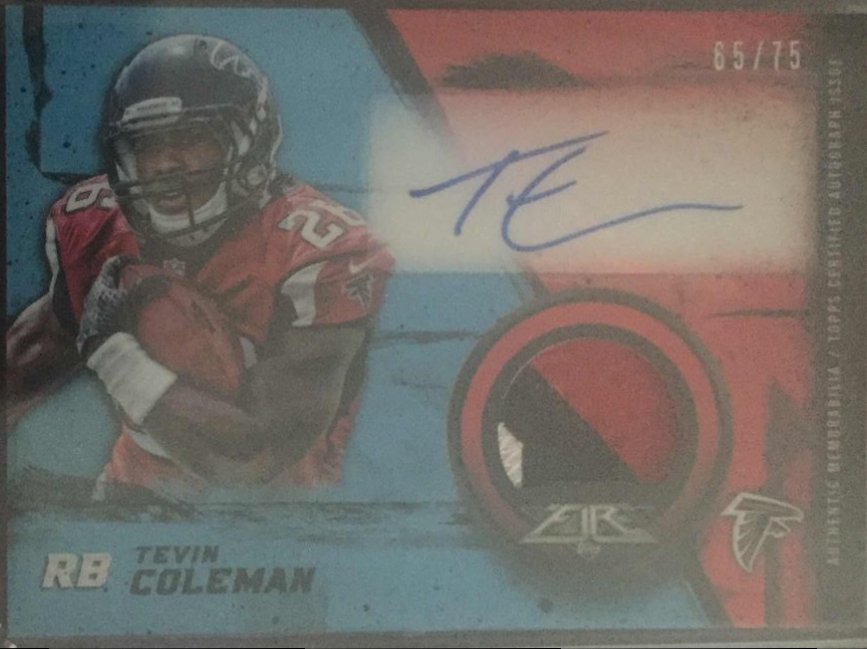 2015 Topps Fire Tevin Coleman Two-color Patch Auto 65/75 RC