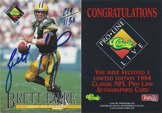 1994 Pro Line Live Autographs #47 Brett Favre
